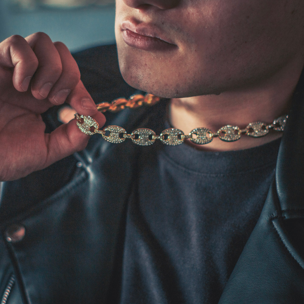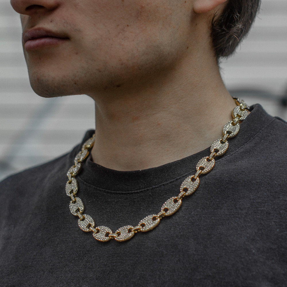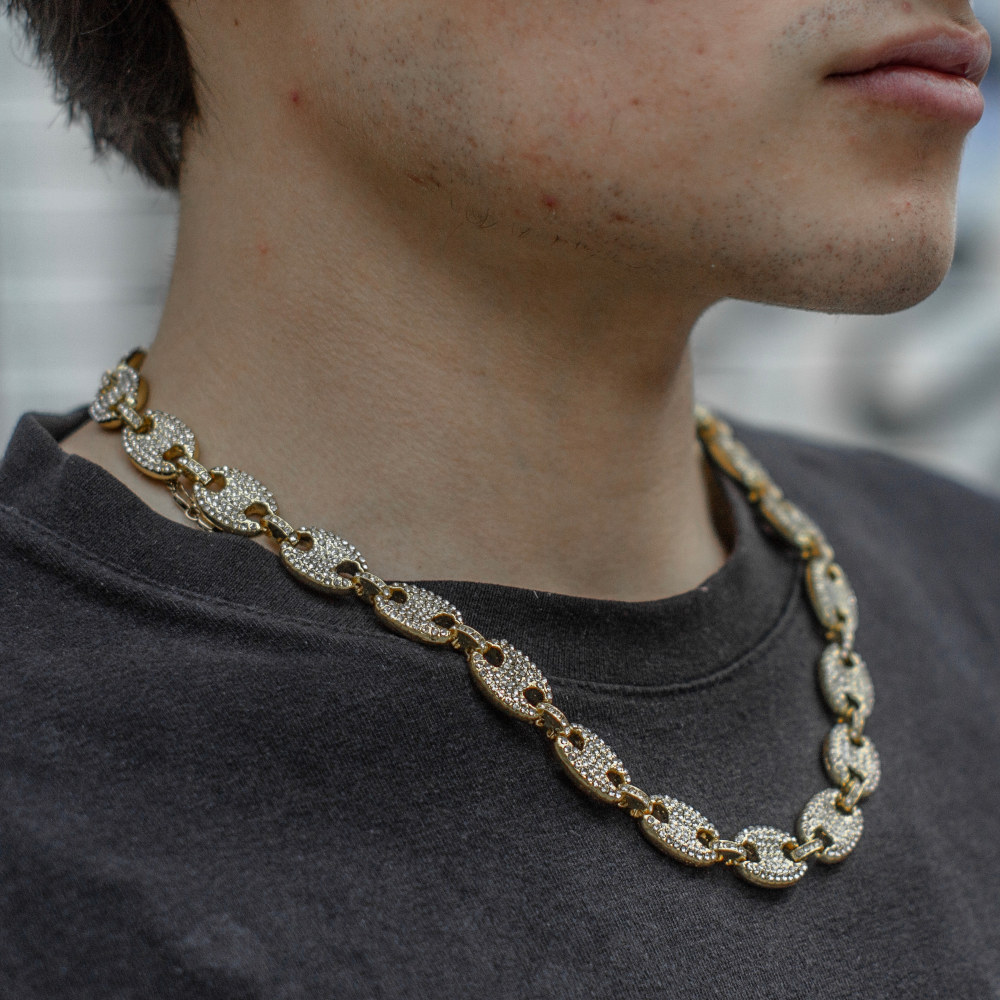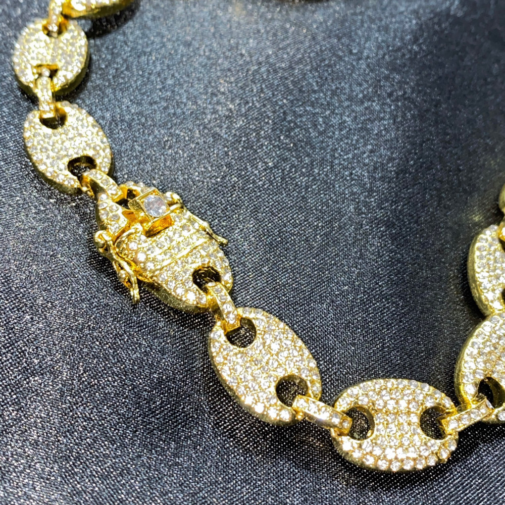cadena corte Italiano, de acero inoxidable con chapeado en oro amarillo de 18 Kilates, cuenta con incrustaciones de zirconias cúbicas calidad (AAAAA).