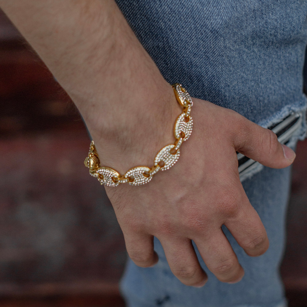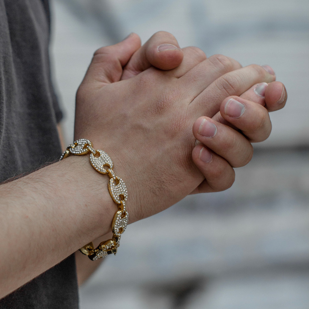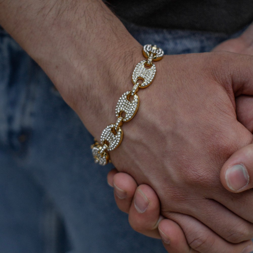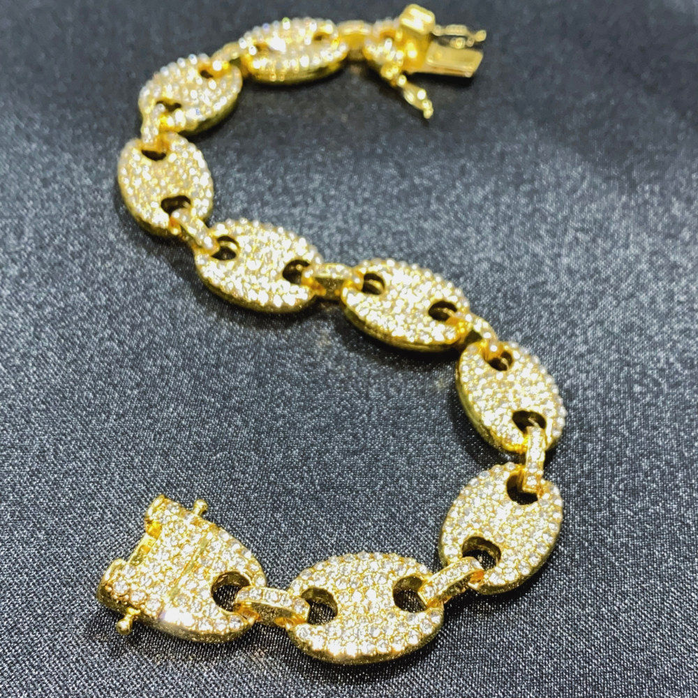 pulso corte Italiano, de acero inoxidable con chapeado en oro amarillo de 18 Kilates, cuenta con incrustaciones de zirconias cúbicas calidad (AAAAA).