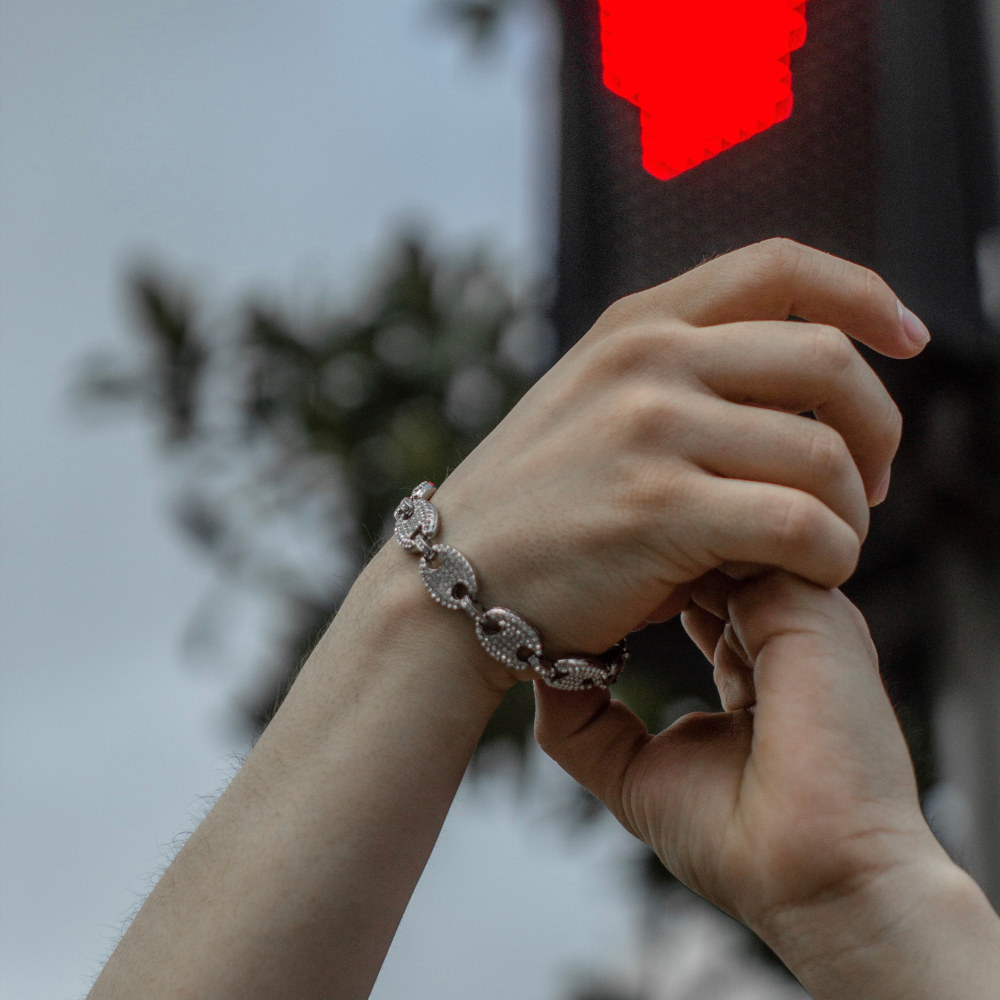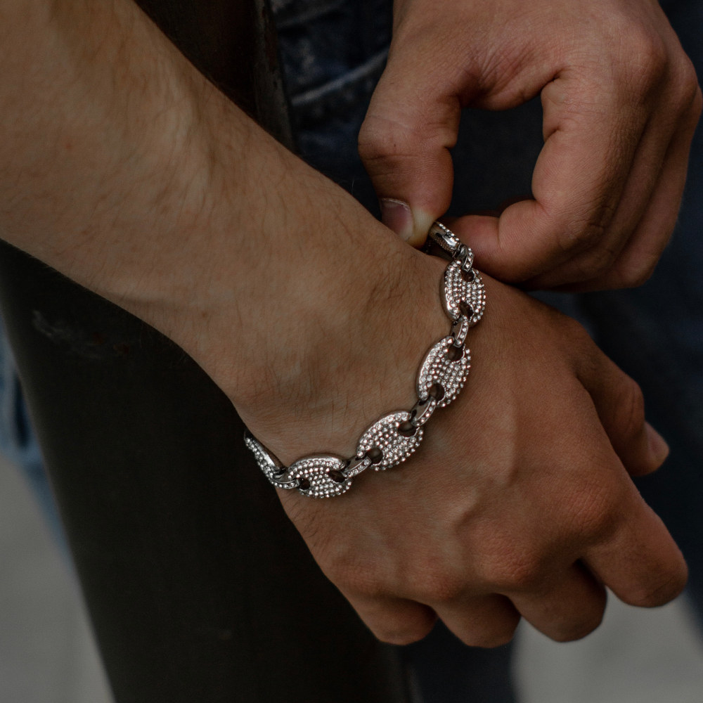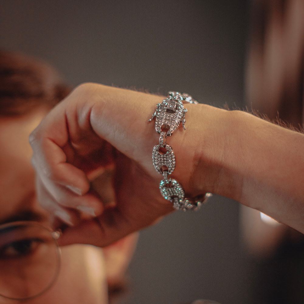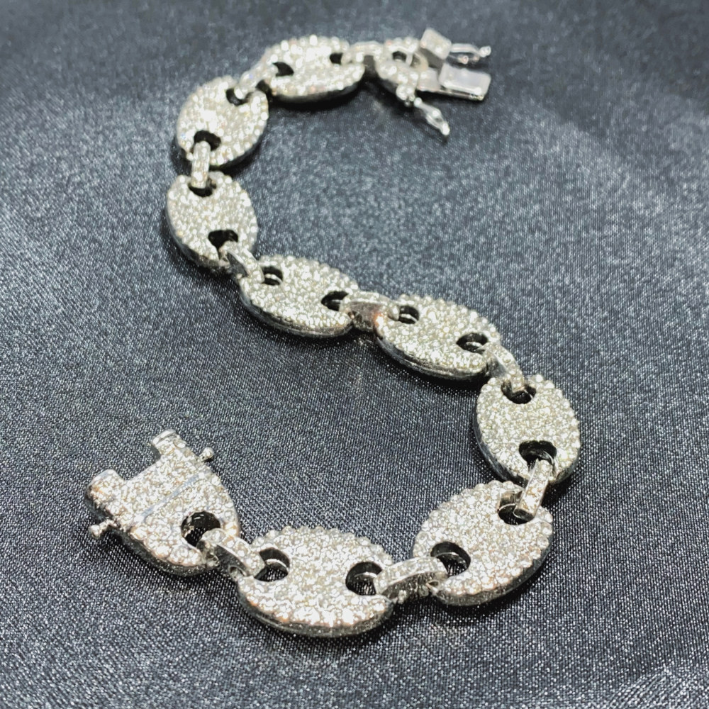 pulso corte Italiano, de acero inoxidable con chapeado en oro blanco de 18 Kilates, cuenta con incrustaciones de zirconias cúbicas calidad (AAAAA).