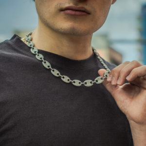 Cadena Corte Cubano en Oro Blanco de 18K con Zirconias Cubicas